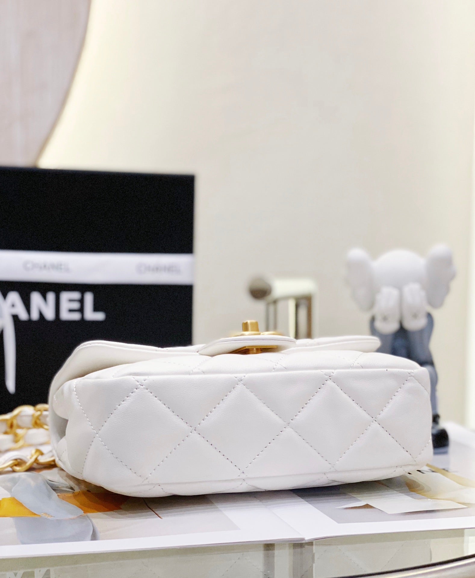 Chanel Small Flap Bag White Lambskin AS4012 size 21x12x7 cm