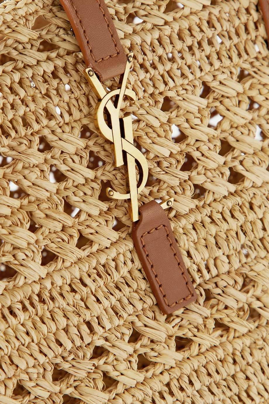 SAINT LAURENT Panier small leather-trimmed raffia tote